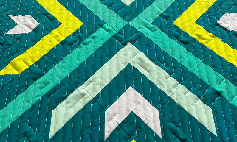 I made this quilt for a good friend and neighbor who was moving to Arizona. I loved the southwest feel and the rich colors made me so happy. The pattern was Palm Springs by Laundry Basket Quilts using their linnen texture fabric collection. I custom quilted this one with rulerwork on the light and free-motion wishbones on the colors.